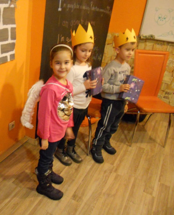 Od ove školske godine, u školi u Cvijićevoj 80 nudimo kurseve i za mladje djake. Proslava Nove godine uvek je nešto posebno, a naš poslednji čas u prvom polugodištu obeležen je različitim aktivnostima. Tako naši najmladji djaci imaju priliku da odglume priču o Isusovom rodjenju, a odmah potom da razbijaju pinjatu, kako bi došli do čokoladica i slatkiša koji se unutra kriju. Pogledajte kako smo se proveli!